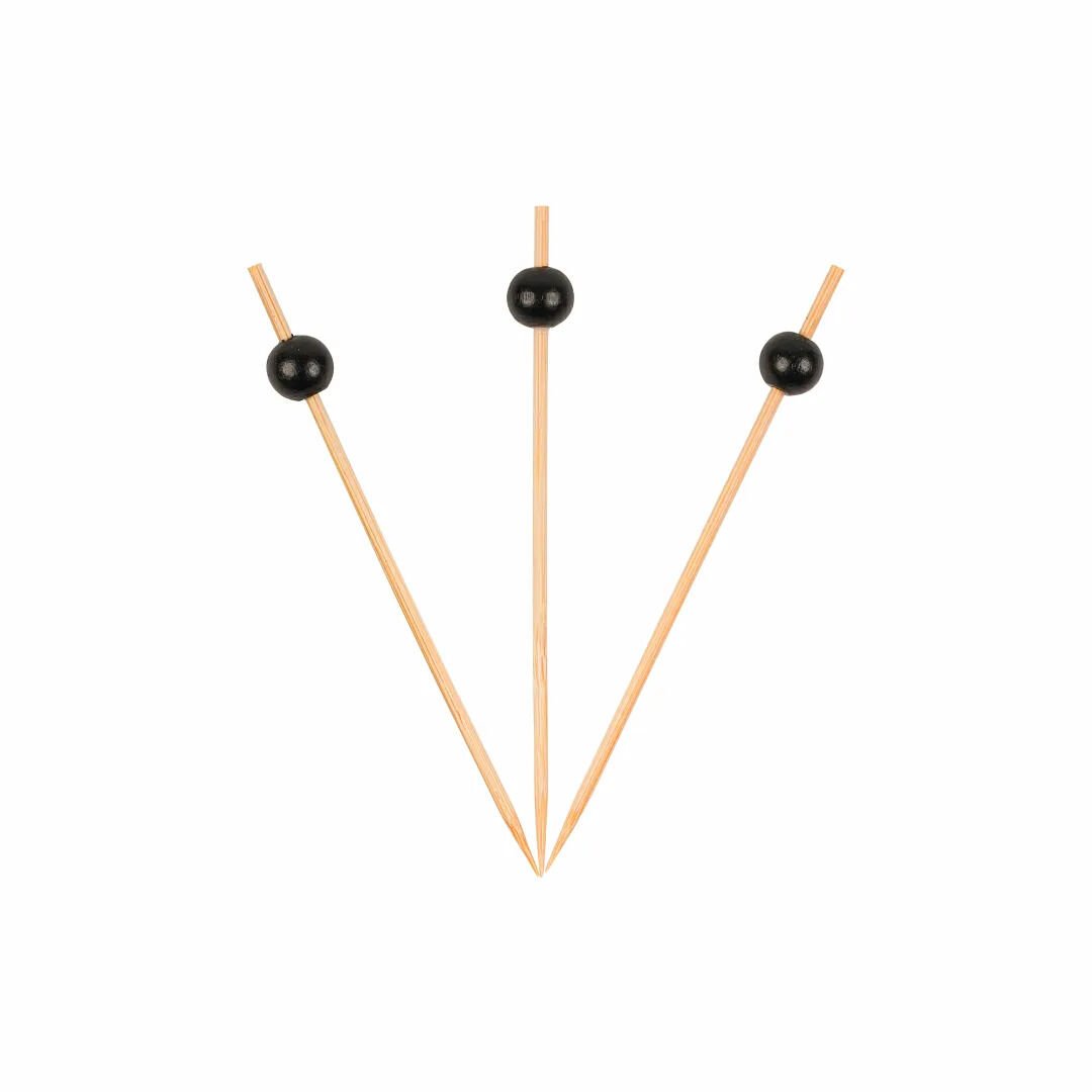 Bambu Top Kürdan 12 cm 50’li Siyah, kafe, bar ve restoranlarda modern ve şık sunumlar için özel olarak tasarlanmıştır. Siyah top başlığı sayesinde kokteyl, aperatif ve sunum tabaklarında sofistike bir görünüm sunar.
