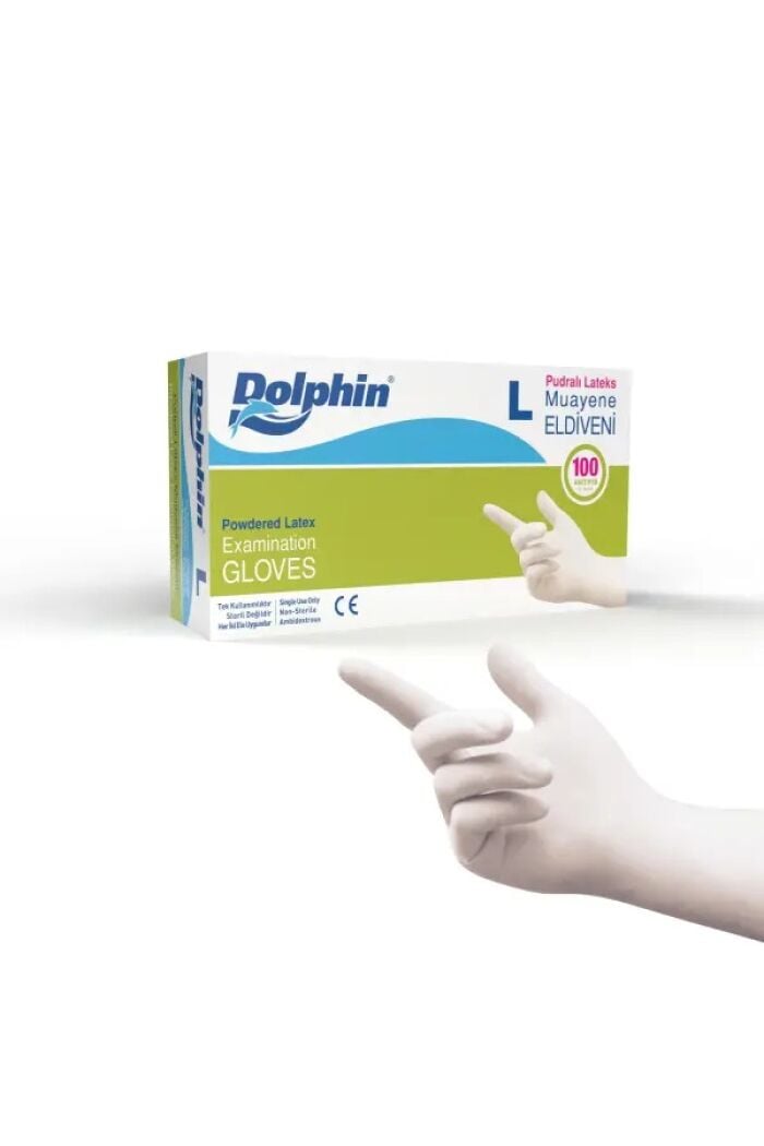 Dolphin Pudralı Lateks Muayene Eldiveni, MDR sertifikalı, lateks içeren, dayanıklı ve esnek bir üründür. Sağlık, gıda ve hijyen gerektiren tüm ortamlarda mikrop, virüs gibi tehditlerden korunmak amacıyla güvenle kullanılabilir. Elastik yapısı ile hastane, veteriner, gıda işleme, kozmetik, temizlik gibi her türlü hijyen ve koruma gerektiren işlerde idealdir.