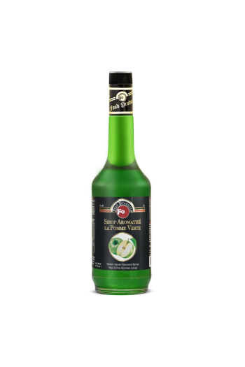 FO Yeşil Elma Aromalı Şurup 700 ml, ferahlatıcı ve hafif ekşi yeşil elma aromasıyla kahve ve kokteyl tariflerinize canlı ve taze bir lezzet katar. Profesyonel bar, kafe ve restoran mutfakları için uygun olan bu aromalı şurup, kahve şurubu ve kokteyl şurubu olarak çok yönlü kullanım sağlar.
