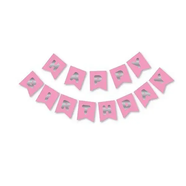 Happy Birthday Banner Pembe Üstü Gümüş, doğum günü organizasyonlarınıza hem canlılık hem de zarafet katmak isteyenler için mükemmel bir tercihtir. Kutlamalarınızı daha özel, daha şık ve daha unutulmaz hale getirir.