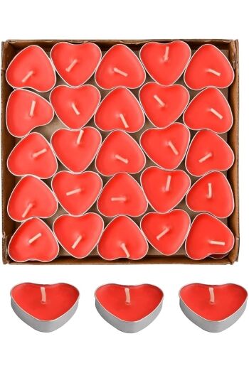 Tea Light Mum Kırmızı Kalpli 8 Gram - 50 Adet