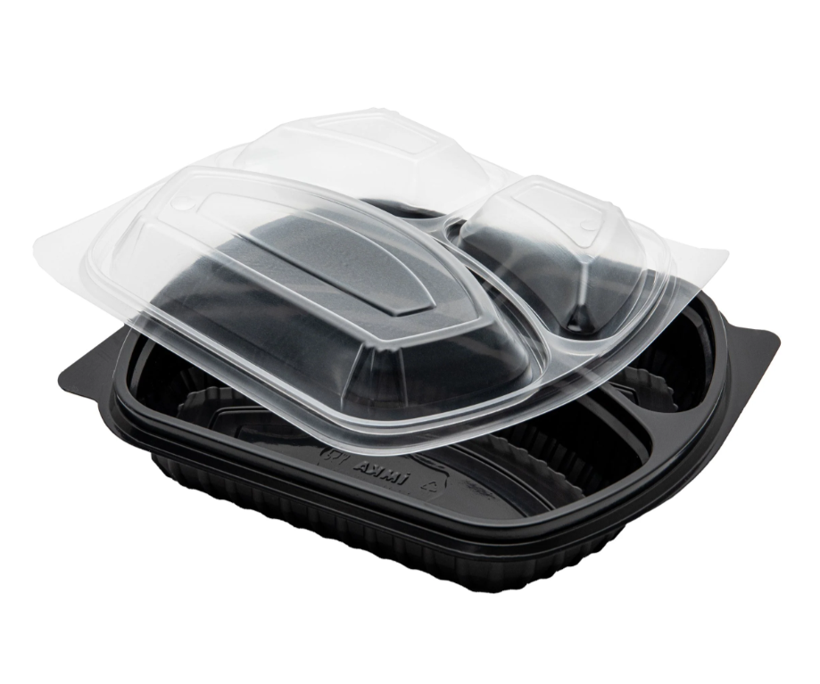 Özel bölmeli yapıya sahip olan Üç Gözlü Mikro Dalga Kabı, farklı yemeklerin birbirine karışmadan aynı kap içerisinde sunulmasına imkan tanır. Pilav, ana yemek ve garnitür gibi farklı gıdalar için ideal kullanım sunan Üç Gözlü Mikro Dalga Kabı, paket servis sunumlarını daha profesyonel hale getirir. Bu sayede müşteriler yemeklerini düzenli ve estetik bir şekilde teslim alabilir.